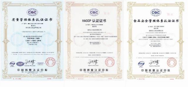2013年8月19日,公司正式獲得食品安全管理、HACCP管理體系兩個(gè)管理體系的認(rèn)證證書。公司自2012年11月18日開業(yè)以來,在全體干部員工齊心協(xié)力基礎(chǔ)上,已成功通過了質(zhì)量管理體系、食品安全管理體系、HACCP管理體系三個(gè)管理體系認(rèn)證,為產(chǎn)品在全國各地市場準(zhǔn)入、出口備案及管理水平提升奠定了基礎(chǔ)。