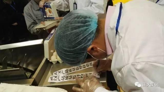現(xiàn)場,武漢產(chǎn)品質(zhì)量監(jiān)督檢驗所方惠文主任、彭勇勝先生對正大雞蛋進行現(xiàn)場抽檢。
