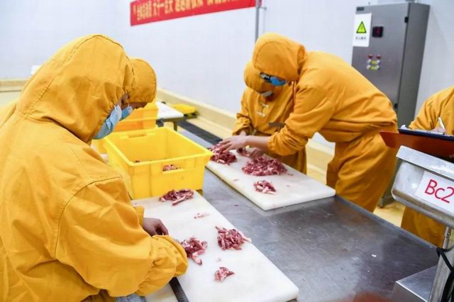比賽分為兩個項(xiàng)目:小酥肉原料肉切肉比賽和小酥肉包裝比賽。公司屠宰車間、分割車間、調(diào)理品車間、副產(chǎn)車間和熟食車間共派出6支參賽隊(duì)伍。小酥肉原料肉切肉比賽每個隊(duì)伍時間限定20分鐘,在20分鐘內(nèi)根據(jù)所切肉條的重量和完成質(zhì)量評定名次。鍋圈小酥肉包裝比賽每個隊(duì)伍包裝300袋(約80kg)小酥肉,根據(jù)所用時間和包裝合格率評定。比賽開始之前,熟食廠經(jīng)理張沛宣布了比賽的規(guī)則,叮囑參賽選手在比賽中注意安全,隨后比賽拉開了帷幕。